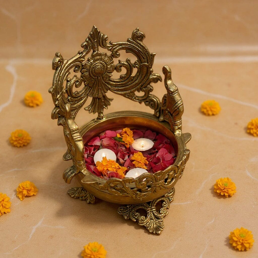 This designer urli is perfect for floating flower or diya displays! Whether it's the center of attraction for festive decorations or just an addition to your home decor, this designer urli is bound to turn heads.
