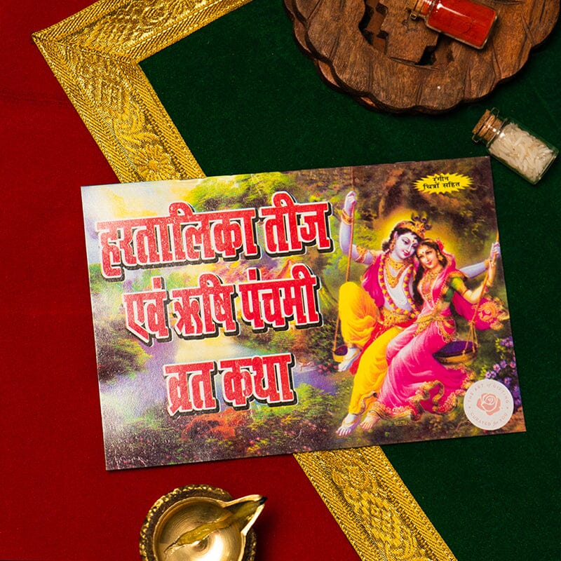 Haratalika Teej Rishi panchmi vrat katha in Hindi Katha combined katha book plastic coated paper coloured photos.