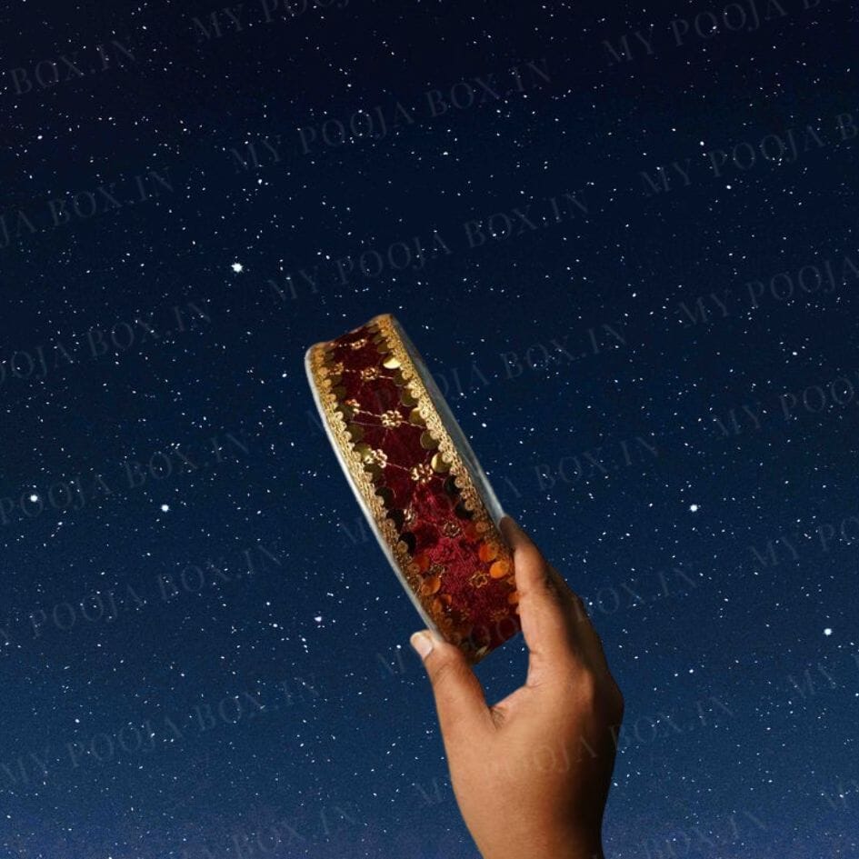 The Maroon Embellished Karwa Chauth Thali Set exudes timeless elegance with its rich maroon tones and intricate embellishments. Designed to enhance the sacred ritual, this set combines classic charm with refined details, creating a luxurious and meaningful puja experience. Ideal for those who appreciate sophistication in every aspect of their celebration.