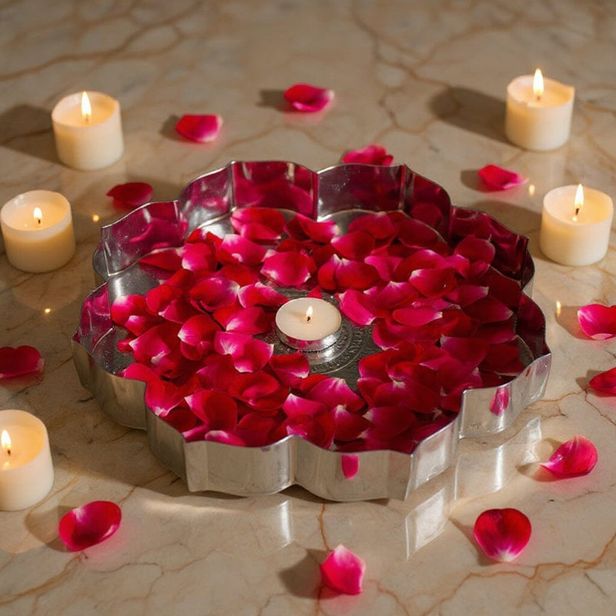 Enhance your decor with the elegant Neerja Silver Finish Urli. Made with premium quality materials, this Urli adds a touch of sophistication to any space. Its silver finish exudes a timeless charm while its sturdy construction ensures long-lasting use. Perfect for showcasing flowers, candles, or potpourri, this Urli will elevate any room with its versatile design.